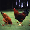 飼育の基本は「放し飼い」です。初生から28日齢までは育雛鶏舎で飼育し、その後放牧場内の簡易鶏舎で1週間程度飼育したあと全面放し飼いとします。放牧場は、1千羽当たり1千5百?の牧草地です。放牧場の周りには外敵の進入を防ぐため防風ネット・防鳥ネットを張ります。