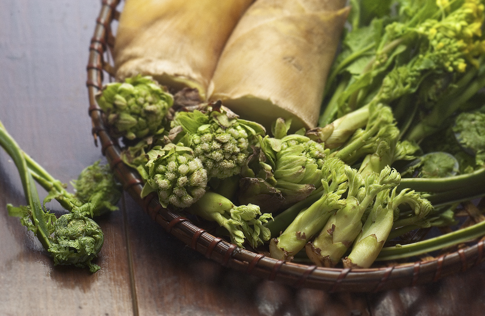 独特の香りとほのかな苦みが特徴の野菜です。葉だけでなく、茎やつぼみも食します。シンプルなおひたしから、和え物や炒め物、パスタまで、多彩な料理に利用できる万能な食材です。苦みが気になる場合は、天ぷらがおすすめ。油と合わせる調理にすることで、苦みがマイルドになります。■山菜(タケノコ、タラの芽、せり、ふきのとう、うど、三つ葉など)