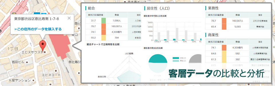 住所、店舗名を入力して、立地データが確認できるサービスです。