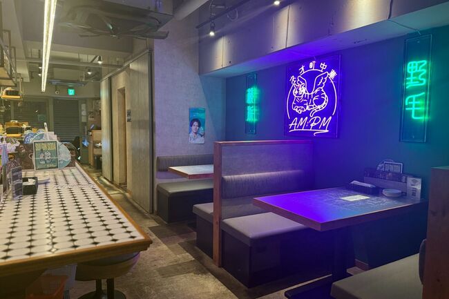 ネオンサインが光るイマドキの空間で、ネオ中華が楽しめる『AM:PM(エーエム・ピーエム)』。古くからの飲み屋街として有名な横浜市の野毛で、若者を惹きつける店としても注目を集め、平日100人、週末200人を集客し、30坪で月商700万円を売り上げる。経営する株式会社Def eat(デフイート)は、関内・野毛エリアで『CHARCOAL STAND NOGE(チャコールスタンド野毛)』や『吟味シテ醸ス(ギンミシテカモス)』など個性的な酒場を展開する。代表取締役・高村峻允氏に、野毛で吸引力のある店をつくるために大事なポイントを取材した。
