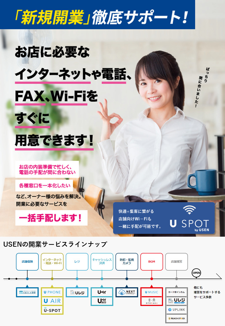 飲食店の開業に欠かせないインターネット・電話回線はUSENへおまかせ!その他、飲食店の開業に必...