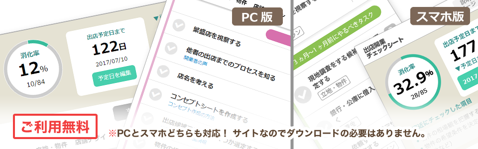 飲食店に完全特化した出店タスク84項目を確認しながら、