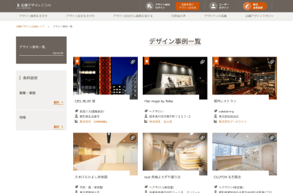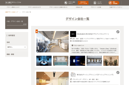 店舗デザイン.COMに登録されている約590社の内装デザイン会社を、エリアや過去の実績から探すことができます。